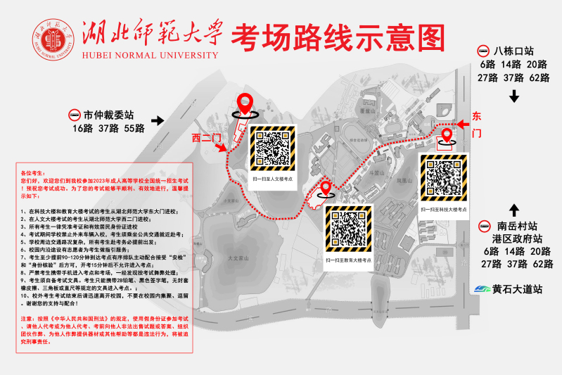 2、人文楼考点的考生必须从校西二门(公园路往红军楼方向)进校;