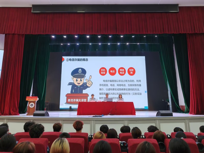 公安民警专业授课,筑牢校园安全防线。为增强新生的安全防范意识,提高自我保护能力,9月5日上午,学院特邀黄石港公安分局民警胡锦波为新生作安全教育讲座。胡警官结合实际诈骗案例,向同学们详细讲解了电信网络诈骗的常见作案手法,并传授了实用的防范技巧,提醒同学们“不听、不信、不转账”。此次讲座效果良好,新生们纷纷表示将在今后的学习和生活中时刻保持警惕,提高安全意识。